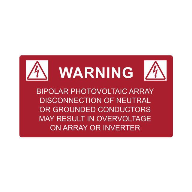 This is manufactured by HellermannTyton. The manufacturer part number is 596-00326. Applications Information- notice. It is assigned with possible HTSUS value of 3926.90.9985. The product is rohs compliant. The symbol only legend includes - see legend (text). Arrangement configuration includes - symbol and text. The product's body is manufactured from highly durable vinyl materials. The background colour is red. The product is widely employed in solar. The hellermanntyton's product offers user-desired applications. It is pre-printed. Language include - english. Its typical moisture sensitivity level is 1 (unlimited). Its accurate length is 2.000" (50.80mm). While text on legend is - warning : bipolar photovoltaic array disconnection of neutral or grounded conductors may result in overvoltage on array or…. It has a long 4 weeks standard lead time. The product is available in adhesive configuration. Furthermore, the product is 3.750" (95.25mm) wide. The legend is white. In addition, bulk is the available packaging type of the product. It is a rectangle product with unique specifications. Moreover, it corresponds to 596-00, a base product number of the product. The product is designated with the ear99 code number.