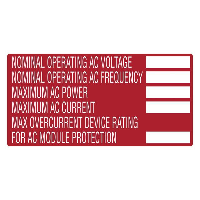This is manufactured by HellermannTyton. The manufacturer part number is 596-00655. It is rated with ifc, nec, ul rated. Applications Information- notice. It is assigned with possible HTSUS value of 4821.90.2000. The product is rohs compliant. The symbol only legend includes - no symbol. Arrangement configuration includes - text only. The product's body is manufactured from highly durable polyester materials. The background colour is red. The product is widely employed in solar. The hellermanntyton's product offers user-desired applications. It is pre-printed, printable (thermal transfer). Language include - english. Its typical moisture sensitivity level is 1 (unlimited). Its accurate length is 2.000" (50.80mm). While text on legend is - nominal operating ac voltage. nominal operating ac frequency. maximum ac power. maximum ac current. maximum overcurrent devi…. It has a long 4 weeks standard lead time. The splendid features of the product include uv resistant, weather resistant. The product is available in adhesive configuration. Furthermore, the product is 4.000" (101.60mm) wide. The legend is white. In addition, bulk is the available packaging type of the product. It is a rectangle product with unique specifications. Moreover, it corresponds to 596-00, a base product number of the product. The product is designated with the ear99 code number.
