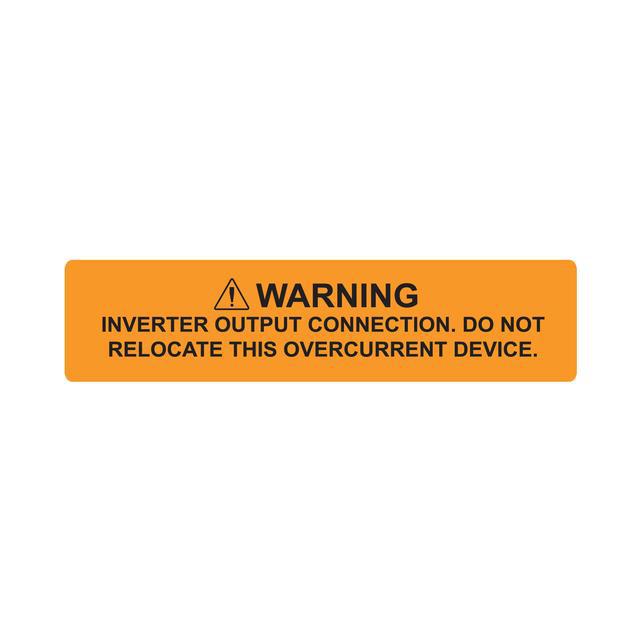 This is manufactured by HellermannTyton. The manufacturer part number is 596-00589. Its text message shows warning-inverter output connectiondo not relocate this overcurrent device . The product is available in self adhesive configuration. It has a decent black/orange/white colour. The product is made from highly stable and reliable vinyl. In addition, the height is 19.05 mm. Furthermore, the product is 104.6mm wide. It contains 50 item per package . However, its text language is english . It is rated with ifc, nec, ul rated. Applications Information- safety. It is assigned with possible HTSUS value of 4821.90.2000. The product is rohs compliant. The symbol only legend includes - no symbol. Arrangement configuration includes - text only. The product's body is manufactured from highly durable vinyl materials. The background colour is orange. The product is widely employed in solar. The hellermanntyton's product offers user-desired applications. It is pre-printed, printable (thermal transfer). Language include - english. Its typical moisture sensitivity level is 1 (unlimited). Its accurate length is 4.118" (104.60mm). While text on legend is - warning : inverter output connection. do not relocate this over current device. It has a long 4 weeks standard lead time. The splendid features of the product include reflective. The product is available in adhesive configuration. Furthermore, the product is 0.750" (19.05mm) 3/4" wide. The legend is black. In addition, bulk is the available packaging type of the product. It is a rectangle product with unique specifications. Moreover, it corresponds to 596-00, a base product number of the product. The product is designated with the ear99 code number.