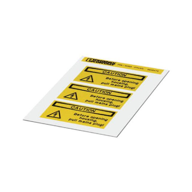 This is manufactured by Phoenix Contact. The manufacturer part number is 0830470. It is designed with an attractive yellow colour background . Its text colour is black . Furthermore, the product is 74mm wide. Its accurate length is 37mm. The quantity of the pack is 3 . It has a/an adhesive type fixing . It is assigned with possible HTSUS value of 3919.90.5060. The product is rohs compliant. Its typical moisture sensitivity level is 1 (unlimited). In addition, sheet is the available packaging type of the product. The phoenix contact's product offers user-desired applications. The product is designated with the ear99 code number.