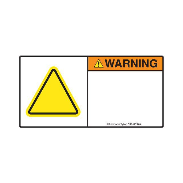 This is manufactured by HellermannTyton. The manufacturer part number is 596-00644. It is rated with ansi. Applications Information- safety: warning. It is assigned with possible HTSUS value of 3919.10.2055. The symbol only legend includes - see legend (text). Arrangement configuration includes - symbol and text. The product's body is manufactured from highly durable polyester materials. The background colour is orange, white. The product is widely employed in general. The hellermanntyton's product offers user-desired applications. It is pre-printed. Language include - english. Its typical moisture sensitivity level is not applicable. Its accurate length is 2.750" (69.85mm). While text on legend is - warning. It has a long 4 weeks standard lead time. The product is available in adhesive configuration. Furthermore, the product is 1.350" (34.29mm) wide. The legend is black, yellow. In addition, bulk is the available packaging type of the product. It is a rectangle product with unique specifications. Moreover, it corresponds to 596-00, a base product number of the product. The product is designated with the ear99 code number.