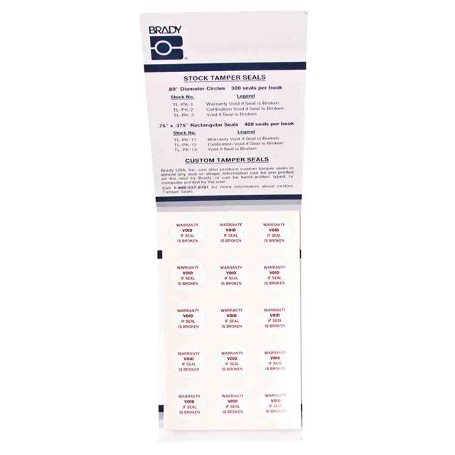This is manufactured by Brady Corporation. The manufacturer part number is TL-PK-1. Applications Information- safety. It is assigned with possible HTSUS value of 3919.90.5060. The product is rohs3 compliant. The symbol only legend includes - no symbol. Arrangement configuration includes - text only. The product's body is manufactured from highly durable vinyl materials. The label has a standard 0.800" (20.32mm) diameter. The background colour is white. It is a circle product with unique specifications. The product is widely employed in general. In addition, it is reach unaffected. It is pre-printed. Language include - english. It is shipped in bulk package . Its typical moisture sensitivity level is not applicable. While text on legend is - calibration void if seal is broken. It has a long 3 weeks standard lead time. The splendid features of the product include abrasion resistant, chemical resistant, tamper evident, uv resistant, weather resistant. The product is available in adhesive, permanent configuration. The legend is red. Moreover, it corresponds to tl-pk, a base product number of the product. The product is designated with the ear99 code number.