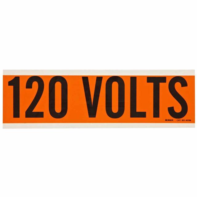 This is manufactured by Brady Corporation. The manufacturer part number is 44104. Applications Information- notice. It is assigned with possible HTSUS value of 3919.10.2055. The symbol only legend includes - no symbol. Arrangement configuration includes - text only. The product's body is manufactured from highly durable vinyl cloth materials. Location Information - indoor. The background colour is orange. It is a rectangle product with unique specifications. The product is widely employed in electrical. It is pre-printed. Language include - english. It is shipped in bulk package . Its typical moisture sensitivity level is not applicable. Its accurate length is 9.000" (228.60mm). While text on legend is - 120 volts. The product is available in adhesive configuration. Furthermore, the product is 2.250" (57.15mm) wide. The legend is black. The product is designated with the ear99 code number.
