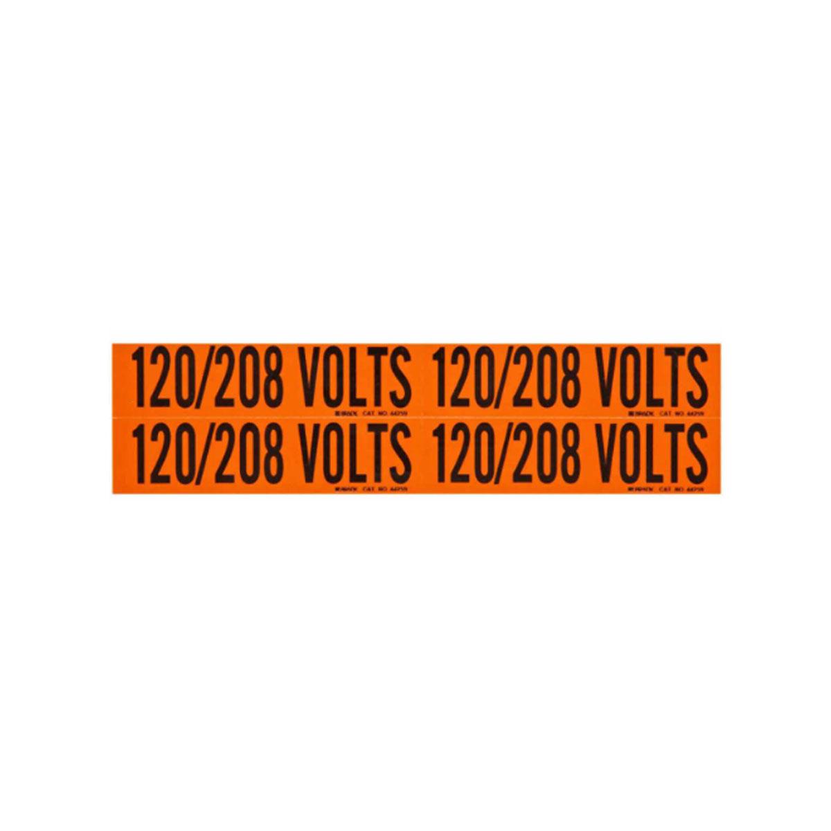 This is manufactured by Brady Corporation. The manufacturer part number is 44259. Applications Information- notice. It is assigned with possible HTSUS value of 5906.99.1000. The symbol only legend includes - no symbol. Arrangement configuration includes - text only. The product's body is manufactured from highly durable vinyl cloth materials. Location Information - indoor. The background colour is orange. It is a rectangle product with unique specifications. The product is widely employed in electrical. It is pre-printed. Language include - english. It is shipped in bulk package . Its typical moisture sensitivity level is not applicable. Its accurate length is 4.125" (104.78mm). While text on legend is - 120/208 volts. The product is available in adhesive configuration. Furthermore, the product is 1.125" (28.58mm) wide. The legend is black. The product is designated with the ear99 code number.