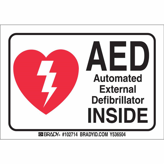 This is manufactured by Brady Corporation. The manufacturer part number is 102714. Applications Information- notice. It is assigned with possible HTSUS value of 3919.90.5060. The product is rohs3 compliant. The symbol only legend includes - no symbol. Arrangement configuration includes - text only. Furthermore, the product is 3.500" (88.90mm) wide. Location Information - outdoor. The background colour is white. In addition, it is reach unaffected. The product is widely employed in general. The brady corporation's product offers user-desired applications. It is pre-printed. Language include - english. Its typical moisture sensitivity level is not applicable. Its accurate length is 5.000" (127.00mm). While text on legend is - aed automated external defibrillator inside. It has a long 4 weeks standard lead time. The splendid features of the product include abrasion resistant, chemical resistant. The product is available in adhesive configuration. The product's body is manufactured from highly durable polyester (pet) materials. The product brady®, is a highly preferred choice for users. The legend is black, red. In addition, bulk is the available packaging type of the product. It is a rectangle product with unique specifications. The product is designated with the ear99 code number.