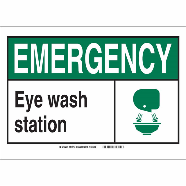 This is manufactured by Brady Corporation. The manufacturer part number is 119991. Applications Information- safety. It is assigned with possible HTSUS value of 4911.99.8000. The product is rohs3 compliant. The symbol only legend includes - see legend (text). Arrangement configuration includes - symbol and text. Furthermore, the product is 5.000" (127.00mm) wide. Location Information - outdoor. The background colour is white. In addition, it is reach unaffected. The product is widely employed in facility. The brady corporation's product offers user-desired applications. It is pre-printed. Language include - english. Its typical moisture sensitivity level is not applicable. Its accurate length is 7.000" (177.80mm). While text on legend is - emergency. eye wash station. It has a long 4 weeks standard lead time. The splendid features of the product include abrasion resistant, chemical resistant. The product is available in adhesive configuration. The product's body is manufactured from highly durable vinyl materials. The product brady®, is a highly preferred choice for users. The legend is black, green. In addition, bulk is the available packaging type of the product. It is a rectangle product with unique specifications. The product is designated with the ear99 code number.