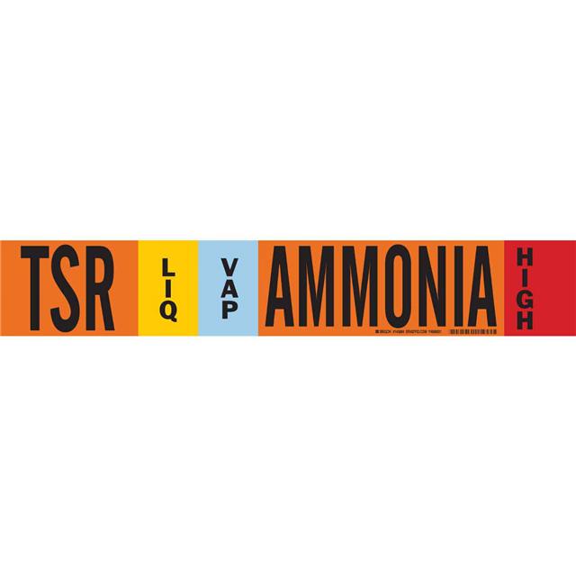 This is manufactured by Brady Corporation. The manufacturer part number is 145884. Applications Information- notice. It is assigned with possible HTSUS value of 3919.90.5060. The product is rohs3 compliant. The symbol only legend includes - no symbol. Arrangement configuration includes - text only. Furthermore, the product is 4.000" (101.60mm) wide. Location Information - outdoor. The background colour is orange. In addition, it is reach unaffected. The product is widely employed in pipe. The brady corporation's product offers user-desired applications. On the other hand, the maximum exterior diameter of the pipe is 8.000" (203.20mm). It is pre-printed. Language include - english. Its typical moisture sensitivity level is not applicable. Its accurate length is 24.000" (609.60mm). While text on legend is - tsr ammonia. It has a long 4 weeks standard lead time. The splendid features of the product include abrasion resistant, chemical resistant, weather resistant. The product is available in adhesive configuration. The product's body is manufactured from highly durable vinyl materials. The product brady®, is a highly preferred choice for users. The legend is black, blue, red, yellow. In addition, bulk is the available packaging type of the product. It is a rectangle product with unique specifications. The product is designated with the ear99 code number.