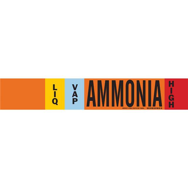 This is manufactured by Brady Corporation. The manufacturer part number is 145885. Applications Information- notice. It is assigned with possible HTSUS value of 3919.90.5060. The product is rohs3 compliant. The symbol only legend includes - no symbol. Arrangement configuration includes - text only. Furthermore, the product is 4.000" (101.60mm) wide. Location Information - outdoor. The background colour is orange. In addition, it is reach unaffected. The product is widely employed in general. The brady corporation's product offers user-desired applications. On the other hand, the maximum exterior diameter of the pipe is 8.000" (203.20mm). It is pre-printed. Language include - english. Its typical moisture sensitivity level is not applicable. Its accurate length is 24.000" (609.60mm). While text on legend is - ammonia. It has a long 4 weeks standard lead time. The splendid features of the product include abrasion resistant, chemical resistant, weather resistant. The product is available in adhesive, permanent configuration. The product's body is manufactured from highly durable vinyl materials. The product brady®, is a highly preferred choice for users. The legend is black, blue, red, yellow. In addition, bulk is the available packaging type of the product. It is a rectangle product with unique specifications. The product is designated with the ear99 code number.