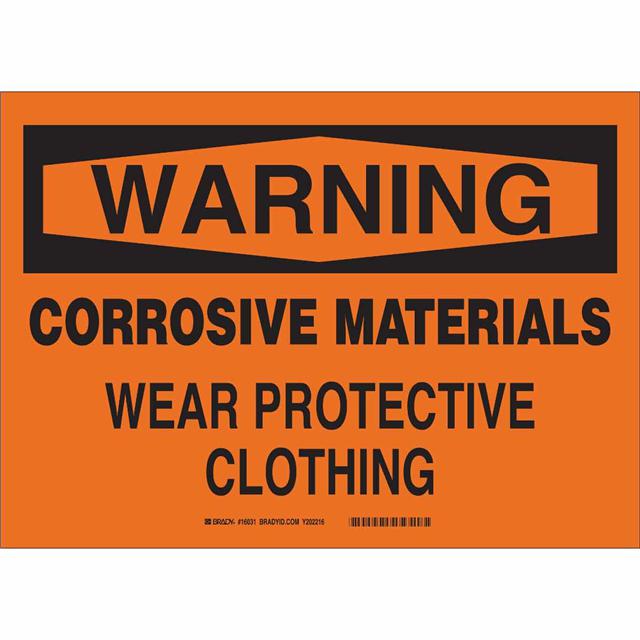 This is manufactured by Brady Corporation. The manufacturer part number is 16031. Applications Information- safety: warning. It is assigned with possible HTSUS value of 3919.90.5060. The product is rohs3 compliant. The symbol only legend includes - no symbol. Arrangement configuration includes - text only. Furthermore, the product is 10.000" (254.00mm) wide. Location Information - outdoor. The background colour is orange. It is a rectangle product with unique specifications. The product is widely employed in facility. In addition, it is reach unaffected. It is pre-printed. Language include - english. It is shipped in bulk package . Its typical moisture sensitivity level is not applicable. Its accurate length is 14.000" (355.60mm). While text on legend is - warning. corrosive materials wear protective clothing. It has a long 4 weeks standard lead time. The splendid features of the product include abrasion resistant, chemical resistant. The product is available in adhesive configuration. The product's body is manufactured from highly durable vinyl materials. The product brady®, is a highly preferred choice for users. The legend is black. The product is designated with the ear99 code number.