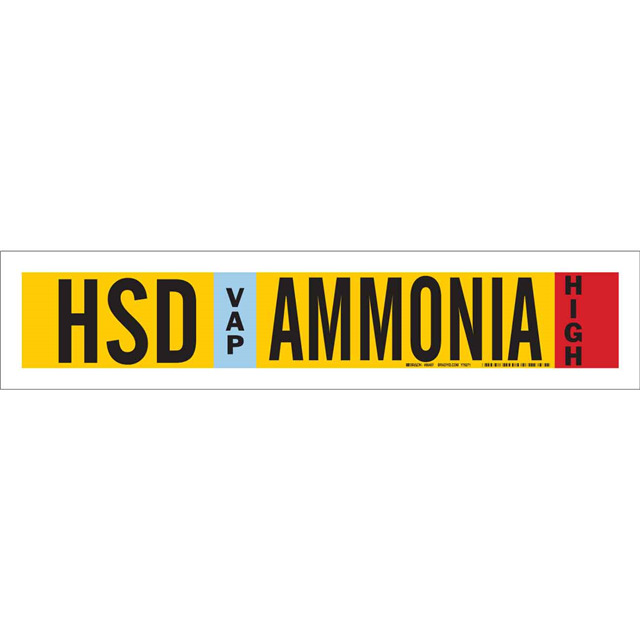 This is manufactured by Brady Corporation. The manufacturer part number is 90427. Applications Information- notice. It is assigned with possible HTSUS value of 3919.90.5060. The product is not applicable. The symbol only legend includes - no symbol. Arrangement configuration includes - text only. Furthermore, the product is 1.125" (28.58mm) wide. Location Information - outdoor. The background colour is yellow. In addition, it is reach unaffected. The product is widely employed in pipe. The brady corporation's product offers user-desired applications. On the other hand, the maximum exterior diameter of the pipe is 0.750" (19.05mm) 3/4". It is pre-printed. Language include - english. While the minimum pipe's exterior diameter is 2.375" (60.33mm). Its typical moisture sensitivity level is not applicable. Its accurate length is 7.000" (177.80mm). While text on legend is - hsd. vap. ammonia. high. It has a long 4 weeks standard lead time. The splendid features of the product include abrasion resistant, chemical resistant, weather resistant. The product is available in adhesive configuration. The product's body is manufactured from highly durable vinyl materials. The product brady®, is a highly preferred choice for users. The legend is black, blue, red. In addition, bulk is the available packaging type of the product. It is a rectangle product with unique specifications. The product is designated with the ear99 code number.