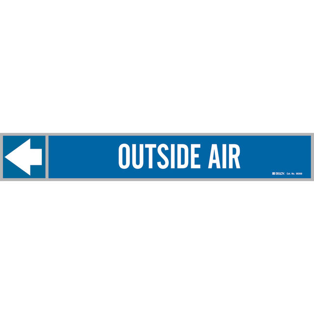 This is manufactured by Brady Corporation. The manufacturer part number is 98368. Applications Information- compressed air. It is assigned with possible HTSUS value of 4911.99.8000. The product is rohs3 compliant. The symbol only legend includes - directional arrow. Arrangement configuration includes - symbol and text. Furthermore, the product is 2.250" (57.15mm) 2 1/4" wide. Location Information - outdoor. The background colour is blue. In addition, it is reach unaffected. The product is widely employed in pipe. The brady corporation's product offers user-desired applications. On the other hand, the maximum exterior diameter of the pipe is 2.500" (63.50mm). It is pre-printed. Language include - english. While the minimum pipe's exterior diameter is 6.000" (152.40mm). Its typical moisture sensitivity level is not applicable. Its accurate length is 13.250" (336.55mm). While text on legend is - outside air. It has a long 4 weeks standard lead time. The splendid features of the product include abrasion resistant, chemical resistant, weather resistant. The product is available in adhesive configuration. The product's body is manufactured from highly durable vinyl materials. The product brady®, is a highly preferred choice for users. The legend is white. In addition, bulk is the available packaging type of the product. It is a rectangle product with unique specifications. The product is designated with the ear99 code number.