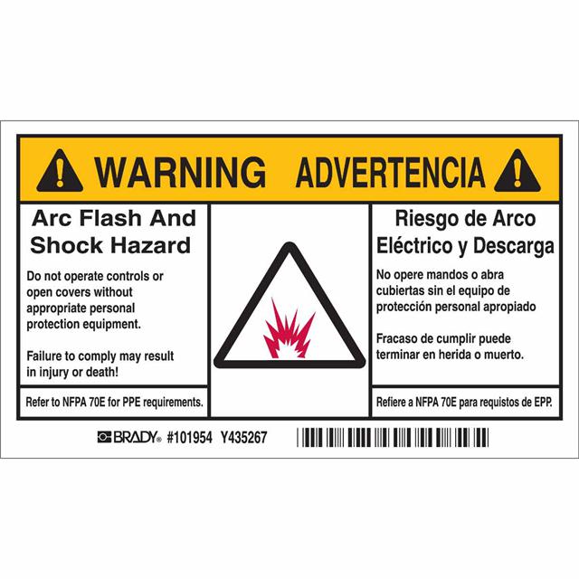 This is manufactured by Brady Corporation. The manufacturer part number is 101954. Applications Information- safety: hazard. It is assigned with possible HTSUS value of 3919.90.5060. The product is rohs3 compliant. The symbol only legend includes - arc flash hazard. Arrangement configuration includes - text only. Furthermore, the product is 3.500" (88.90mm) wide. Location Information - outdoor. The background colour is white. It is a rectangle product with unique specifications. The product is widely employed in electrical. In addition, it is reach unaffected. It is pre-printed. Language include - english. It is shipped in bulk package . Its typical moisture sensitivity level is not applicable. Its accurate length is 6.000" (152.40mm). While text on legend is - arc flash hazard do not operate controls or open covers without appropriate personal protection equipment. failure to comply m…. It has a long 4 weeks standard lead time. The splendid features of the product include abrasion resistant, chemical resistant. The product is available in adhesive, permanent configuration. The product's body is manufactured from highly durable polyester (pet) materials. The product brady®, is a highly preferred choice for users. The legend is black, orange. The product is designated with the ear99 code number.
