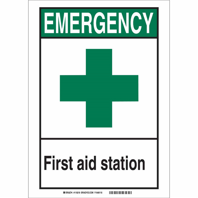 This is manufactured by Brady Corporation. The manufacturer part number is 119228. Applications Information- safety. It is assigned with possible HTSUS value of 4911.99.8000. The product is rohs3 compliant. The symbol only legend includes - see legend (text). Arrangement configuration includes - symbol and text. Furthermore, the product is 7.000" (177.80mm) wide. Location Information - outdoor. The background colour is white. In addition, it is reach unaffected. The product is widely employed in facility. The brady corporation's product offers user-desired applications. It is pre-printed. Language include - english. Its typical moisture sensitivity level is not applicable. Its accurate length is 10.000" (254.00mm). While text on legend is - emergency. first aid station. It has a long 4 weeks standard lead time. The splendid features of the product include abrasion resistant, chemical resistant. The product is available in adhesive configuration. The product's body is manufactured from highly durable vinyl materials. The product brady®, is a highly preferred choice for users. The legend is black, green. In addition, bulk is the available packaging type of the product. It is a rectangle product with unique specifications. The product is designated with the ear99 code number.