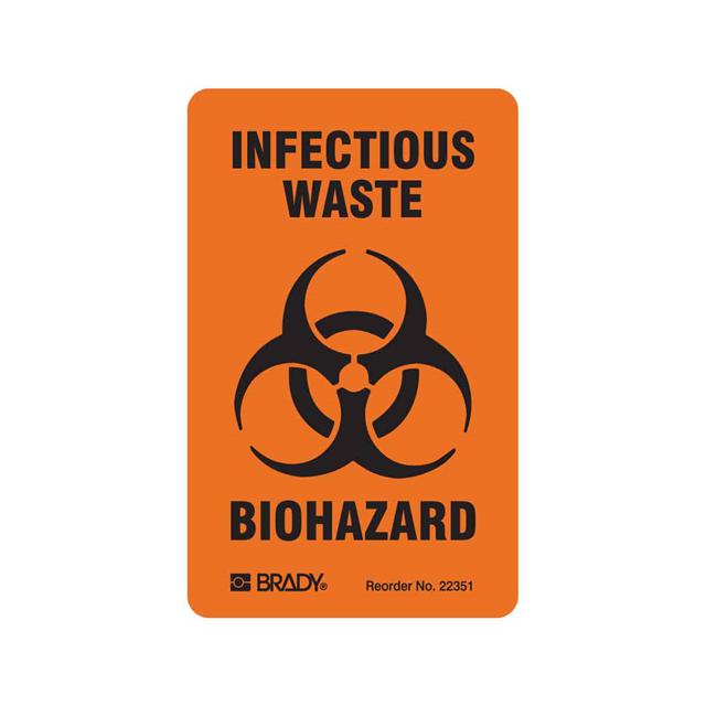 This is manufactured by Brady Corporation. The manufacturer part number is 22351LS. Applications Information- safety: hazard. It is assigned with possible HTSUS value of 4821.10.4000. The product is rohs3 compliant. The symbol only legend includes - no symbol. Arrangement configuration includes - text only. Furthermore, the product is 1.875" (47.63mm) wide. Location Information - indoor. The background colour is orange. In addition, it is reach unaffected. The product is widely employed in facility. The brady corporation's product offers user-desired applications. It is pre-printed. Language include - english. Its typical moisture sensitivity level is not applicable. Its accurate length is 3.000" (76.20mm). While text on legend is - infectious waste biohazard. It has a long 4 weeks standard lead time. The product is available in adhesive configuration. The product's body is manufactured from highly durable paper materials. The product brady®, is a highly preferred choice for users. The legend is black. In addition, bulk is the available packaging type of the product. It is a rectangle product with unique specifications. The product is designated with the ear99 code number.