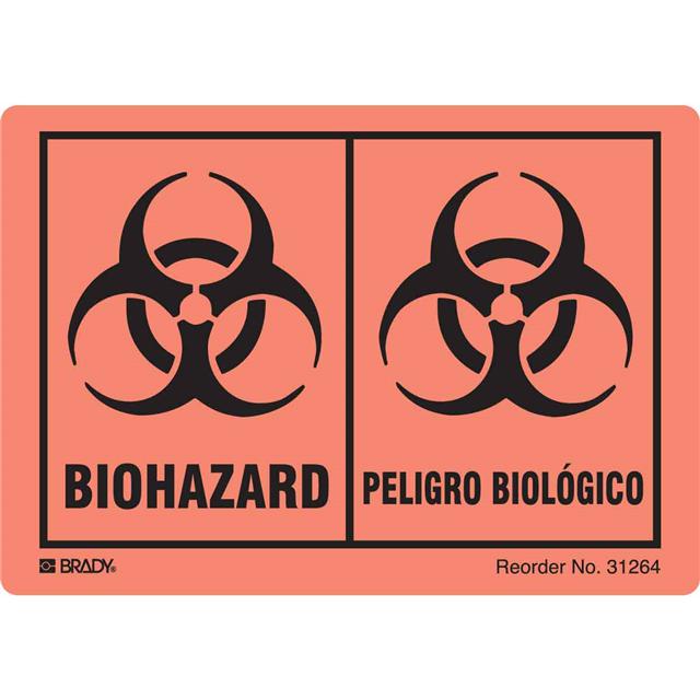 This is manufactured by Brady Corporation. The manufacturer part number is 31264LS. Applications Information- safety: hazard. It is assigned with possible HTSUS value of 4821.10.4000. The product is rohs3 compliant. The symbol only legend includes - bio hazard. Arrangement configuration includes - symbol and text. Furthermore, the product is 3.500" (88.90mm) wide. Location Information - indoor. The background colour is orange. It is a rectangle product with unique specifications. The product is widely employed in facility. In addition, it is reach unaffected. It is pre-printed. Language include - english/spanish. It is shipped in bulk package . Its typical moisture sensitivity level is not applicable. Its accurate length is 5.000" (127.00mm). While text on legend is - biohazard / peligro biolagico. It has a long 4 weeks standard lead time. The product is available in adhesive configuration. The product's body is manufactured from highly durable paper materials. The product brady®, is a highly preferred choice for users. The legend is black. The product is designated with the ear99 code number.