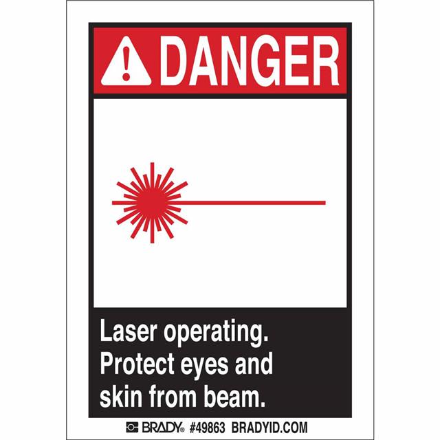 This is manufactured by Brady Corporation. The manufacturer part number is 49863. Applications Information- safety: danger. It is assigned with possible HTSUS value of 3919.90.5060. The product is rohs3 compliant. The symbol only legend includes - laser hazard. Arrangement configuration includes - symbol and text. Furthermore, the product is 3.500" (88.90mm) wide. Location Information - outdoor. The background colour is white. In addition, it is reach unaffected. The product is widely employed in facility. The brady corporation's product offers user-desired applications. It is pre-printed. Language include - english. Its typical moisture sensitivity level is not applicable. Its accurate length is 5.000" (127.00mm). While text on legend is - danger. laser operating. protect eyes and skin from beam.. It has a long 4 weeks standard lead time. The splendid features of the product include abrasion resistant, chemical resistant. The product is available in adhesive configuration. The product's body is manufactured from highly durable polyester (pet) materials. The product brady®, is a highly preferred choice for users. The legend is black, red. In addition, bulk is the available packaging type of the product. It is a rectangle product with unique specifications. The product is designated with the ear99 code number.