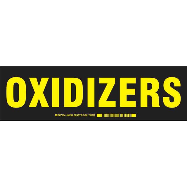 This is manufactured by Brady Corporation. The manufacturer part number is 60298. Applications Information- notice. It is assigned with possible HTSUS value of 3919.90.5060. The product is rohs3 compliant. The symbol only legend includes - no symbol. Arrangement configuration includes - text only. Furthermore, the product is 3.500" (88.90mm) wide. Location Information - outdoor. The background colour is black. It is a rectangle product with unique specifications. The product is widely employed in general. In addition, it is reach unaffected. It is pre-printed. Language include - english. It is shipped in bulk package . Its typical moisture sensitivity level is not applicable. Its accurate length is 12.000" (304.80mm). While text on legend is - oxidizers. It has a long 4 weeks standard lead time. The splendid features of the product include abrasion resistant, chemical resistant. The product is available in adhesive configuration. The product's body is manufactured from highly durable polyester (pet) materials. The product brady®, is a highly preferred choice for users. The legend is yellow. The product is designated with the ear99 code number.