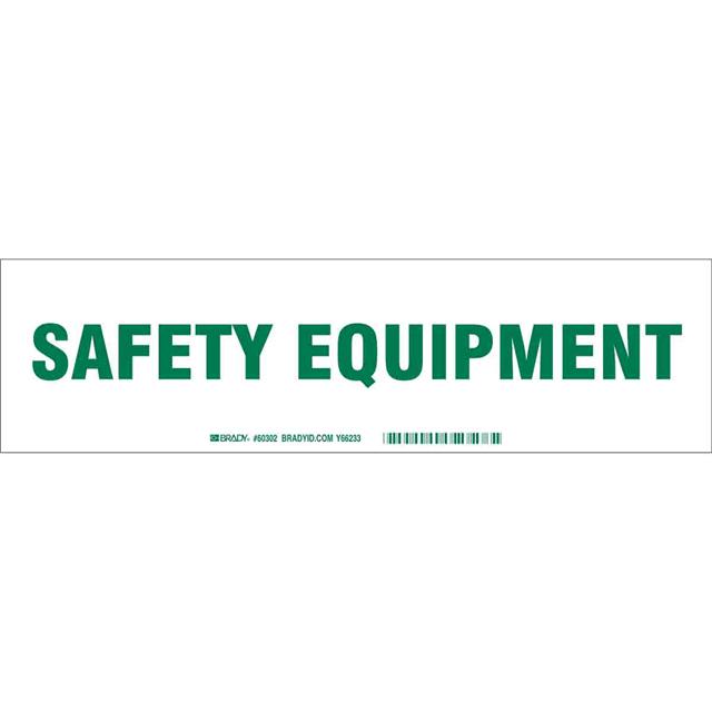This is manufactured by Brady Corporation. The manufacturer part number is 60302. Applications Information- safety. It is assigned with possible HTSUS value of 3919.90.5060. The product is rohs3 compliant. The symbol only legend includes - no symbol. Arrangement configuration includes - text only. Furthermore, the product is 3.500" (88.90mm) wide. Location Information - outdoor. The background colour is white. It is a rectangle product with unique specifications. The product is widely employed in general. In addition, it is reach unaffected. It is pre-printed. Language include - english. It is shipped in bulk package . Its typical moisture sensitivity level is not applicable. Its accurate length is 12.000" (304.80mm). While text on legend is - safety equipment. It has a long 4 weeks standard lead time. The splendid features of the product include abrasion resistant, chemical resistant. The product is available in adhesive configuration. The product's body is manufactured from highly durable polyester (pet) materials. The product brady®, is a highly preferred choice for users. The legend is green. The product is designated with the ear99 code number.