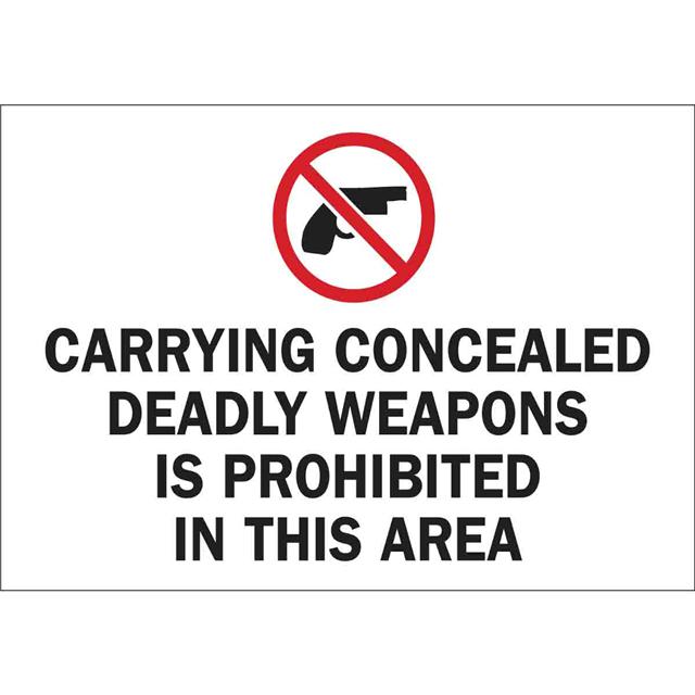 This is manufactured by Brady Corporation. The manufacturer part number is 80037. It is rated with ansi. Applications Information- notice. It is assigned with possible HTSUS value of 4911.99.8000. The product is rohs3 compliant. The symbol only legend includes - see legend (text). Arrangement configuration includes - symbol and text. Furthermore, the product is 7.000" (177.80mm) wide. Location Information - outdoor. The background colour is white. It is a rectangle product with unique specifications. The product is widely employed in general. In addition, it is reach unaffected. It is pre-printed. Language include - english. It is shipped in bulk package . Its typical moisture sensitivity level is not applicable. Its accurate length is 10.000" (254.00mm). While text on legend is - carrying concealed deadly weapons is prohibited. The splendid features of the product include abrasion resistant, chemical resistant. The product is available in adhesive, permanent configuration. The product's body is manufactured from highly durable polyester (pet) materials. The product brady®, is a highly preferred choice for users. The legend is black, red. The product is designated with the ear99 code number.
