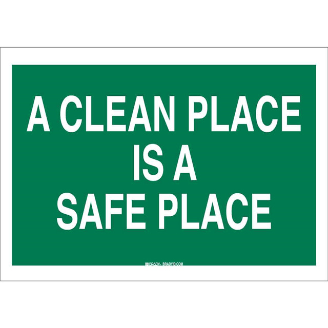 This is manufactured by Brady Corporation. The manufacturer part number is 85690. Applications Information- notice. It is assigned with possible HTSUS value of 4911.99.8000. The product is rohs3 compliant. The symbol only legend includes - no symbol. Arrangement configuration includes - text only. Furthermore, the product is 7.000" (177.80mm) wide. Location Information - outdoor. The background colour is green. In addition, it is reach unaffected. The product is widely employed in facility. The brady corporation's product offers user-desired applications. It is pre-printed. Language include - english. Its typical moisture sensitivity level is not applicable. Its accurate length is 10.000" (254.00mm). While text on legend is - a clean place is a safe place. The splendid features of the product include abrasion resistant, chemical resistant. The product is available in adhesive configuration. The product's body is manufactured from highly durable polyester (pet) materials. The product brady®, is a highly preferred choice for users. The legend is white. In addition, bulk is the available packaging type of the product. It is a rectangle product with unique specifications. The product is designated with the ear99 code number.
