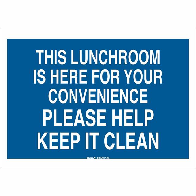 This is manufactured by Brady Corporation. The manufacturer part number is 85750. It is rated with ansi. Applications Information- notice. It is assigned with possible HTSUS value of 4911.99.8000. The product is rohs3 compliant. The symbol only legend includes - no symbol. Arrangement configuration includes - text only. Furthermore, the product is 7.000" (177.80mm) wide. Location Information - outdoor. The background colour is blue. It is a rectangle product with unique specifications. The product is widely employed in facility. In addition, it is reach unaffected. It is pre-printed. Language include - english. It is shipped in bulk package . Its typical moisture sensitivity level is not applicable. Its accurate length is 10.000" (254.00mm). While text on legend is - this lunchroom is here for your convenience please help keep it clean. It has a long 4 weeks standard lead time. The splendid features of the product include abrasion resistant, chemical resistant. The product is available in adhesive, permanent configuration. The product's body is manufactured from highly durable polyester materials. The product brady®, is a highly preferred choice for users. The legend is white. The product is designated with the ear99 code number.
