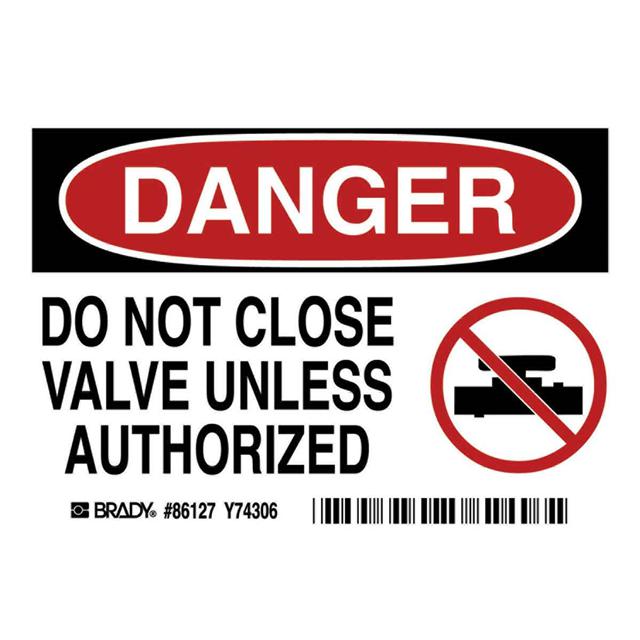 This is manufactured by Brady Corporation. The manufacturer part number is 86127. Applications Information- safety: danger. It is assigned with possible HTSUS value of 3919.90.5060. The product is rohs3 compliant. The symbol only legend includes - see legend (text). Arrangement configuration includes - symbol and text. Furthermore, the product is 3.500" (88.90mm) wide. Location Information - outdoor. The background colour is white. It is a rectangle product with unique specifications. The product is widely employed in facility. In addition, it is reach unaffected. It is pre-printed. Language include - english. It is shipped in bulk package . Its typical moisture sensitivity level is not applicable. Its accurate length is 5.000" (127.00mm). While text on legend is - danger. do not close valve un less authorized. It has a long 4 weeks standard lead time. The splendid features of the product include abrasion resistant, chemical resistant. The product is available in adhesive configuration. The product's body is manufactured from highly durable polyester (pet) materials. The product brady®, is a highly preferred choice for users. The legend is black, red. The product is designated with the ear99 code number.