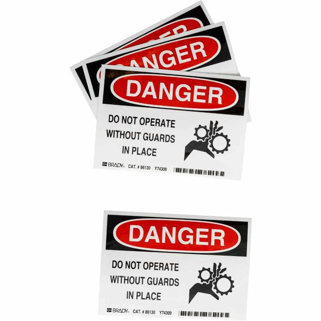 This is manufactured by Brady Corporation. The manufacturer part number is 86130. Applications Information- safety: danger. It is assigned with possible HTSUS value of 4911.99.8000. The product is rohs3 compliant. The symbol only legend includes - pinch point. Arrangement configuration includes - symbol and text. Furthermore, the product is 3.500" (88.90mm) wide. Location Information - outdoor. The background colour is white. It is a rectangle product with unique specifications. The product is widely employed in facility. In addition, it is reach unaffected. It is pre-printed. Language include - english. It is shipped in bulk package . Its typical moisture sensitivity level is not applicable. Its accurate length is 5.000" (127.00mm). While text on legend is - danger. do not operate without guards in place. It has a long 4 weeks standard lead time. The splendid features of the product include abrasion resistant, chemical resistant. The product is available in adhesive configuration. The product's body is manufactured from highly durable polyester (pet) materials. The product brady®, is a highly preferred choice for users. The legend is black, red. The product is designated with the ear99 code number.