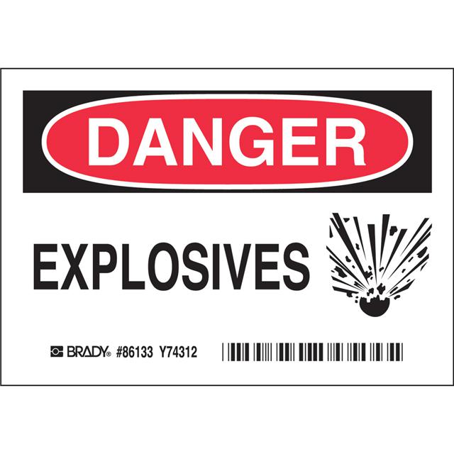 This is manufactured by Brady Corporation. The manufacturer part number is 86133. Applications Information- safety: danger. It is assigned with possible HTSUS value of 3919.90.5060. The product is rohs3 compliant. The symbol only legend includes - explosives. Arrangement configuration includes - symbol and text. Furthermore, the product is 3.500" (88.90mm) wide. Location Information - outdoor. The background colour is white. It is a rectangle product with unique specifications. The product is widely employed in facility. In addition, it is reach unaffected. It is pre-printed. Language include - english. It is shipped in bulk package . Its typical moisture sensitivity level is not applicable. Its accurate length is 5.000" (127.00mm). While text on legend is - danger. explosives. It has a long 4 weeks standard lead time. The splendid features of the product include abrasion resistant, chemical resistant. The product is available in adhesive configuration. The product's body is manufactured from highly durable polyester (pet) materials. The product brady®, is a highly preferred choice for users. The legend is black, red. The product is designated with the ear99 code number.
