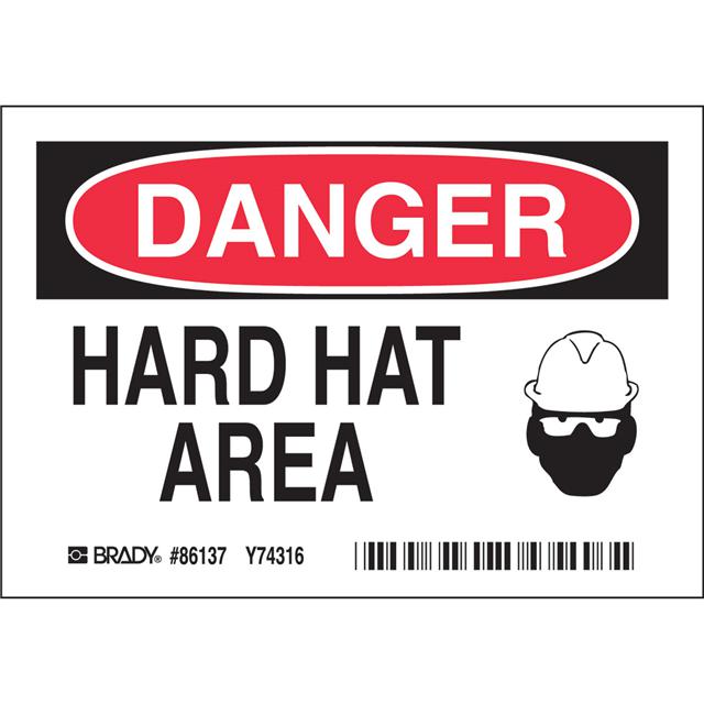 This is manufactured by Brady Corporation. The manufacturer part number is 86137. Applications Information- safety: danger. It is assigned with possible HTSUS value of 3919.90.5060. The product is rohs3 compliant. The symbol only legend includes - wear head protection. Arrangement configuration includes - symbol and text. Furthermore, the product is 3.500" (88.90mm) wide. Location Information - outdoor. The background colour is white. In addition, it is reach unaffected. The product is widely employed in facility. The brady corporation's product offers user-desired applications. It is pre-printed. Language include - english. Its typical moisture sensitivity level is not applicable. Its accurate length is 5.000" (127.00mm). While text on legend is - danger. hard hat area. It has a long 4 weeks standard lead time. The splendid features of the product include abrasion resistant, chemical resistant. The product is available in adhesive configuration. The product's body is manufactured from highly durable polyester (pet) materials. The product brady®, is a highly preferred choice for users. The legend is black, red. In addition, bulk is the available packaging type of the product. It is a rectangle product with unique specifications. The product is designated with the ear99 code number.