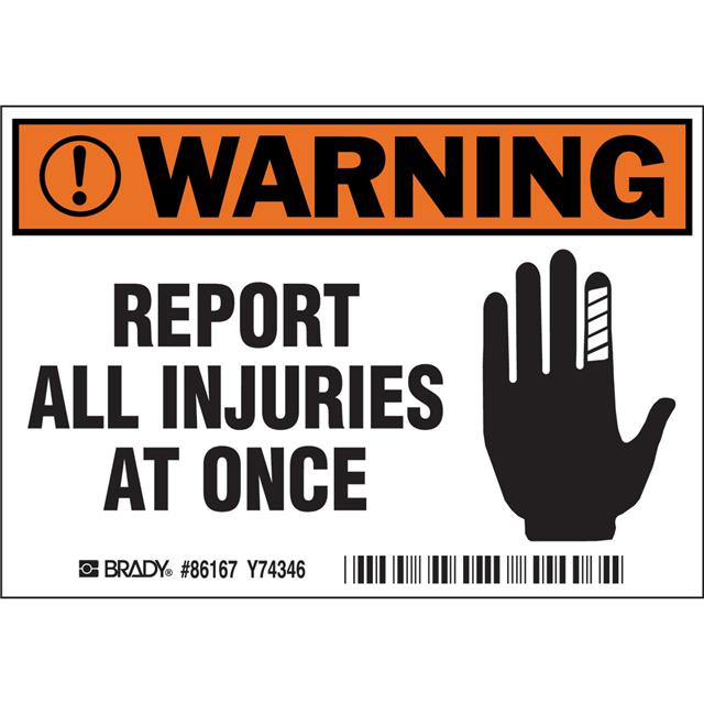 This is manufactured by Brady Corporation. The manufacturer part number is 86167. Applications Information- safety: warning. It is assigned with possible HTSUS value of 3919.90.5060. The product is rohs3 compliant. The symbol only legend includes - see legend (text). Arrangement configuration includes - symbol and text. Furthermore, the product is 5.000" (127.00mm) wide. Location Information - outdoor. The background colour is white. In addition, it is reach unaffected. The product is widely employed in facility. The brady corporation's product offers user-desired applications. It is pre-printed. Language include - english. Its typical moisture sensitivity level is not applicable. Its accurate length is 5.000" (127.00mm). While text on legend is - warning. report all injuries at once. It has a long 4 weeks standard lead time. The splendid features of the product include abrasion resistant, chemical resistant. The product is available in adhesive configuration. The product's body is manufactured from highly durable polyester (pet) materials. The product brady®, is a highly preferred choice for users. The legend is black, orange. In addition, bulk is the available packaging type of the product. It is a square product with unique specifications. The product is designated with the ear99 code number.