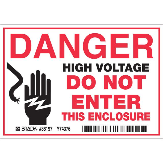 This is manufactured by Brady Corporation. The manufacturer part number is 86197. Applications Information- safety: danger. It is assigned with possible HTSUS value of 3919.90.5060. The product is rohs3 compliant. The symbol only legend includes - electric voltage. Arrangement configuration includes - symbol and text. Furthermore, the product is 3.500" (88.90mm) wide. Location Information - outdoor. The background colour is white. It is a rectangle product with unique specifications. The product is widely employed in facility. In addition, it is reach unaffected. It is pre-printed. Language include - english. It is shipped in bulk package . Its typical moisture sensitivity level is not applicable. Its accurate length is 5.000" (127.00mm). While text on legend is - danger high voltage do not enter this enclosure. It has a long 4 weeks standard lead time. The splendid features of the product include abrasion resistant, chemical resistant. The product is available in adhesive configuration. The product's body is manufactured from highly durable polyester (pet) materials. The product brady®, is a highly preferred choice for users. The legend is black, red. The product is designated with the ear99 code number.