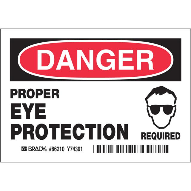 This is manufactured by Brady Corporation. The manufacturer part number is 86210. Applications Information- notice. It is assigned with possible HTSUS value of 3919.90.5060. The product is rohs3 compliant. The symbol only legend includes - wear eye protection. Arrangement configuration includes - symbol and text. Furthermore, the product is 3.500" (88.90mm) wide. Location Information - outdoor. The background colour is white. It is a rectangle product with unique specifications. The product is widely employed in facility. In addition, it is reach unaffected. It is pre-printed. Language include - english. It is shipped in bulk package . Its typical moisture sensitivity level is not applicable. Its accurate length is 5.000" (127.00mm). While text on legend is - danger. proper eye protection required. It has a long 4 weeks standard lead time. The splendid features of the product include abrasion resistant, chemical resistant. The product is available in adhesive configuration. The product's body is manufactured from highly durable polyester (pet) materials. The product brady®, is a highly preferred choice for users. The legend is black, red. The product is designated with the ear99 code number.