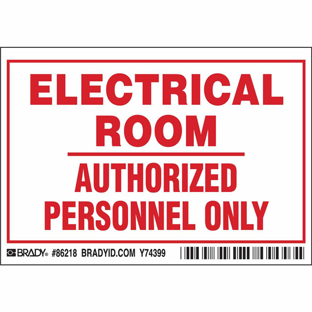 This is manufactured by Brady Corporation. The manufacturer part number is 86218. Applications Information- notice. It is assigned with possible HTSUS value of 3919.90.5060. The product is rohs3 compliant. The symbol only legend includes - no symbol. Arrangement configuration includes - text only. Furthermore, the product is 3.500" (88.90mm) wide. Location Information - outdoor. The background colour is white. In addition, it is reach unaffected. The product is widely employed in facility. The brady corporation's product offers user-desired applications. It is pre-printed. Language include - english. Its typical moisture sensitivity level is not applicable. Its accurate length is 5.000" (127.00mm). While text on legend is - electrical room authorized personnel only. It has a long 4 weeks standard lead time. The splendid features of the product include abrasion resistant, chemical resistant. The product is available in adhesive configuration. The product's body is manufactured from highly durable polyester (pet) materials. The product brady®, is a highly preferred choice for users. The legend is red. In addition, bulk is the available packaging type of the product. It is a rectangle product with unique specifications. The product is designated with the ear99 code number.