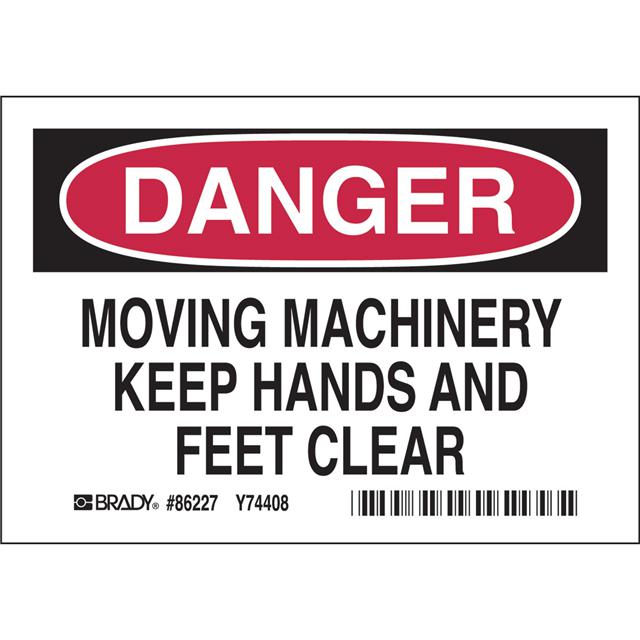 This is manufactured by Brady Corporation. The manufacturer part number is 86227. Applications Information- safety: danger. It is assigned with possible HTSUS value of 4911.99.8000. The product is rohs3 compliant. The symbol only legend includes - no symbol. Arrangement configuration includes - text only. Furthermore, the product is 3.500" (88.90mm) wide. Location Information - outdoor. The background colour is white. In addition, it is reach unaffected. The product is widely employed in facility. The brady corporation's product offers user-desired applications. It is pre-printed. Language include - english. Its typical moisture sensitivity level is not applicable. Its accurate length is 5.000" (127.00mm). While text on legend is - danger. moving machinery keep hands and feet clear. It has a long 4 weeks standard lead time. The splendid features of the product include abrasion resistant, chemical resistant. The product is available in adhesive configuration. The product's body is manufactured from highly durable polyester (pet) materials. The product brady®, is a highly preferred choice for users. The legend is black, red. In addition, bulk is the available packaging type of the product. It is a rectangle product with unique specifications. The product is designated with the ear99 code number.