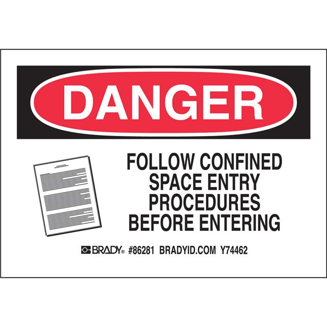 This is manufactured by Brady Corporation. The manufacturer part number is 86281. Applications Information- safety: danger. It is assigned with possible HTSUS value of 3919.90.5060. The product is rohs3 compliant. Arrangement configuration includes - text only. Furthermore, the product is 3.500" (88.90mm) wide. Location Information - outdoor. The background colour is black, red, white. In addition, it is reach unaffected. The product is widely employed in industrial. The brady corporation's product offers user-desired applications. It is pre-printed. Language include - english. Its typical moisture sensitivity level is not applicable. Its accurate length is 5.000" (127.00mm). While text on legend is - danger: follow confined space entry procedures before entering. It has a long 4 weeks standard lead time. The product is available in adhesive configuration. The product brady®, is a highly preferred choice for users. The legend is black, white. In addition, bulk is the available packaging type of the product. It is a rectangle product with unique specifications. The product is designated with the ear99 code number.