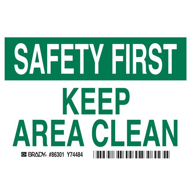 This is manufactured by Brady Corporation. The manufacturer part number is 86301. Applications Information- safety. It is assigned with possible HTSUS value of 3919.90.5060. The product is rohs3 compliant. The symbol only legend includes - no symbol. Arrangement configuration includes - text only. Furthermore, the product is 3.500" (88.90mm) wide. Location Information - outdoor. The background colour is white. It is a rectangle product with unique specifications. The product is widely employed in facility. In addition, it is reach unaffected. It is pre-printed. Language include - english. It is shipped in bulk package . Its typical moisture sensitivity level is not applicable. Its accurate length is 5.000" (127.00mm). While text on legend is - safety first. keep area clean. It has a long 4 weeks standard lead time. The splendid features of the product include abrasion resistant, chemical resistant. The product is available in adhesive configuration. The product's body is manufactured from highly durable polyester (pet) materials. The product brady®, is a highly preferred choice for users. The legend is green. The product is designated with the ear99 code number.