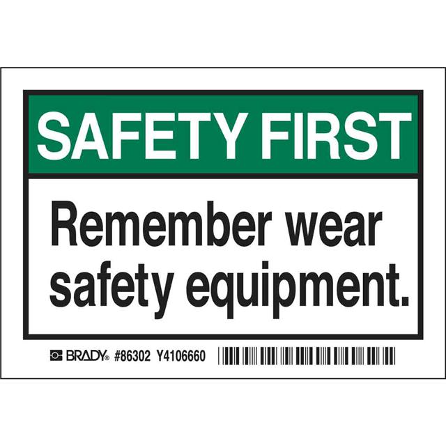 This is manufactured by Brady Corporation. The manufacturer part number is 86302. Applications Information- notice. It is assigned with possible HTSUS value of 3919.90.5060. The product is rohs3 compliant. The symbol only legend includes - no symbol. Arrangement configuration includes - text only. Furthermore, the product is 3.500" (88.90mm) wide. Location Information - outdoor. The background colour is white. It is a rectangle product with unique specifications. The product is widely employed in facility. In addition, it is reach unaffected. It is pre-printed. Language include - english. It is shipped in bulk package . Its typical moisture sensitivity level is not applicable. Its accurate length is 5.000" (127.00mm). While text on legend is - safety first. remember wear safety equipment.. It has a long 4 weeks standard lead time. The splendid features of the product include abrasion resistant, chemical resistant. The product is available in adhesive configuration. The product's body is manufactured from highly durable polyester (pet) materials. The product brady®, is a highly preferred choice for users. The legend is black, green. The product is designated with the ear99 code number.