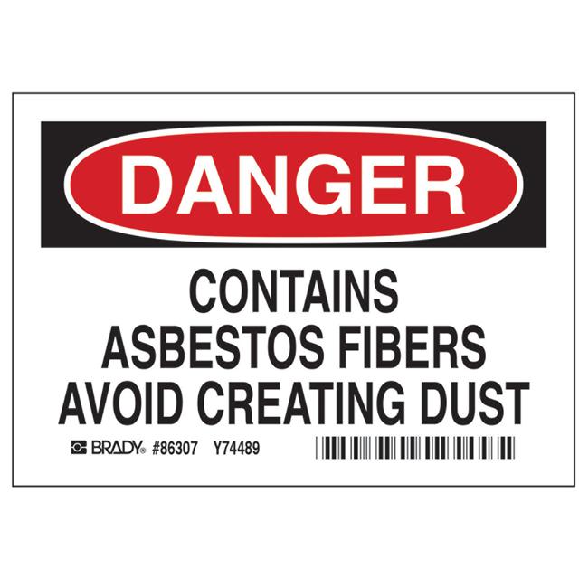 This is manufactured by Brady Corporation. The manufacturer part number is 86307. Applications Information- notice. It is assigned with possible HTSUS value of 3919.90.5060. The product is rohs3 compliant. The symbol only legend includes - no symbol. Arrangement configuration includes - text only. Furthermore, the product is 3.500" (88.90mm) wide. Location Information - outdoor. The background colour is white. It is a rectangle product with unique specifications. The product is widely employed in facility. In addition, it is reach unaffected. It is pre-printed. Language include - english. It is shipped in bulk package . Its typical moisture sensitivity level is not applicable. Its accurate length is 5.000" (127.00mm). While text on legend is - danger. contains asbestos fibers avoid creating dust. It has a long 4 weeks standard lead time. The splendid features of the product include abrasion resistant, chemical resistant. The product is available in adhesive configuration. The product's body is manufactured from highly durable polyester (pet) materials. The product brady®, is a highly preferred choice for users. The legend is black, red. The product is designated with the ear99 code number.