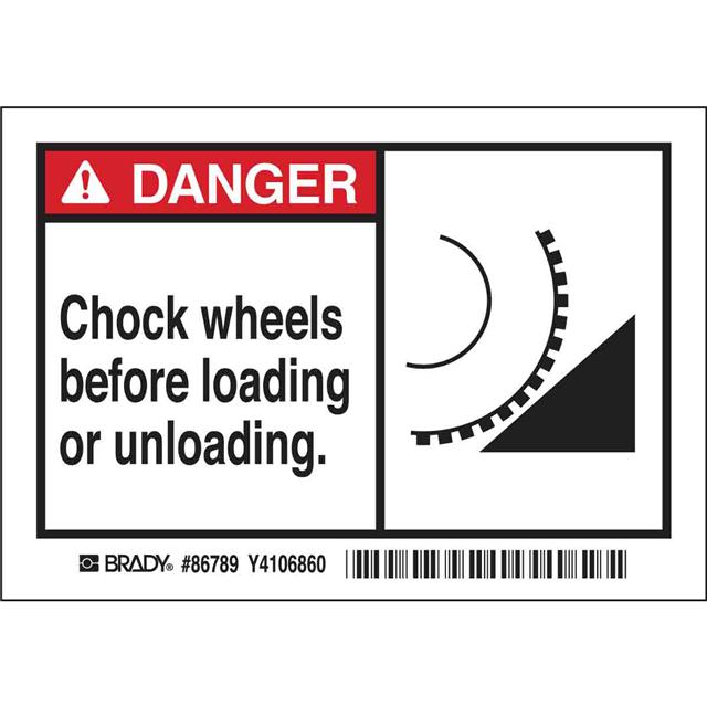 This is manufactured by Brady Corporation. The manufacturer part number is 86789. Applications Information- notice. It is assigned with possible HTSUS value of 3919.90.5060. The product is rohs3 compliant. The symbol only legend includes - no symbol. Arrangement configuration includes - text only. Furthermore, the product is 3.500" (88.90mm) wide. Location Information - outdoor. The background colour is white. It is a rectangle product with unique specifications. The product is widely employed in general. In addition, it is reach unaffected. It is pre-printed. Language include - english. It is shipped in bulk package . Its typical moisture sensitivity level is not applicable. Its accurate length is 5.000" (127.00mm). While text on legend is - chock wheels before loading or unloading. It has a long 4 weeks standard lead time. The splendid features of the product include abrasion resistant, chemical resistant. The product is available in adhesive configuration. The product's body is manufactured from highly durable polyester (pet) materials. The product brady®, is a highly preferred choice for users. The legend is black, red. The product is designated with the ear99 code number.