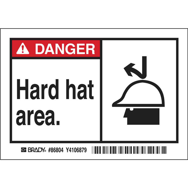 This is manufactured by Brady Corporation. The manufacturer part number is 86804. Applications Information- safety: danger. It is assigned with possible HTSUS value of 3919.90.5060. The product is rohs3 compliant. The symbol only legend includes - wear head protection. Arrangement configuration includes - symbol and text. Furthermore, the product is 3.500" (88.90mm) wide. Location Information - outdoor. The background colour is white. In addition, it is reach unaffected. The product is widely employed in facility. The brady corporation's product offers user-desired applications. It is pre-printed. Language include - english. Its typical moisture sensitivity level is not applicable. Its accurate length is 5.000" (127.00mm). While text on legend is - danger. hard hat area.. It has a long 4 weeks standard lead time. The splendid features of the product include abrasion resistant, chemical resistant. The product is available in adhesive configuration. The product's body is manufactured from highly durable polyester (pet) materials. The product brady®, is a highly preferred choice for users. The legend is black, red. In addition, bulk is the available packaging type of the product. It is a rectangle product with unique specifications. The product is designated with the ear99 code number.