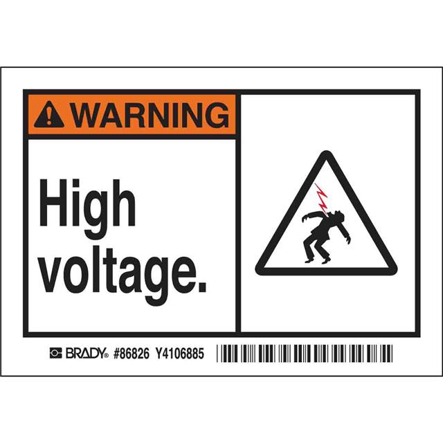 This is manufactured by Brady Corporation. The manufacturer part number is 86826. Applications Information- safety: warning. It is assigned with possible HTSUS value of 3919.90.5060. The product is rohs3 compliant. The symbol only legend includes - see legend (text). Arrangement configuration includes - text only. Furthermore, the product is 3.500" (88.90mm) wide. Location Information - outdoor. The background colour is white. It is a rectangle product with unique specifications. The product is widely employed in electrical. In addition, it is reach unaffected. It is pre-printed. Language include - english. It is shipped in bulk package . Its typical moisture sensitivity level is not applicable. Its accurate length is 5.000" (127.00mm). While text on legend is - warning. high voltage.. It has a long 4 weeks standard lead time. The splendid features of the product include abrasion resistant, chemical resistant. The product is available in adhesive configuration. The product's body is manufactured from highly durable polyester (pet) materials. The product brady®, is a highly preferred choice for users. The legend is black, orange. The product is designated with the ear99 code number.