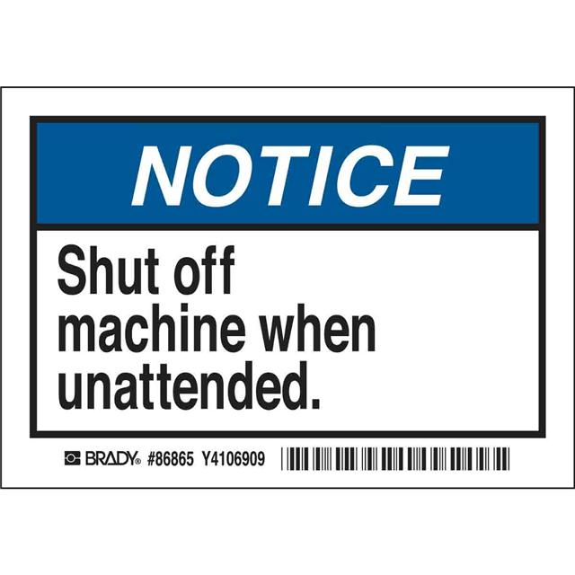 This is manufactured by Brady Corporation. The manufacturer part number is 86865. Applications Information- notice. It is assigned with possible HTSUS value of 3919.90.5060. The product is rohs3 compliant. The symbol only legend includes - no symbol. Arrangement configuration includes - text only. Furthermore, the product is 3.500" (88.90mm) wide. Location Information - outdoor. The background colour is white. It is a rectangle product with unique specifications. The product is widely employed in facility. In addition, it is reach unaffected. It is pre-printed. Language include - english. It is shipped in bulk package . Its typical moisture sensitivity level is not applicable. Its accurate length is 5.000" (127.00mm). While text on legend is - notice. shut off machine when unattended.. It has a long 4 weeks standard lead time. The splendid features of the product include abrasion resistant, chemical resistant. The product is available in adhesive configuration. The product's body is manufactured from highly durable polyester (pet) materials. The product brady®, is a highly preferred choice for users. The legend is black, blue. The product is designated with the ear99 code number.