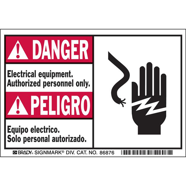 This is manufactured by Brady Corporation. The manufacturer part number is 86876. Applications Information- notice. It is assigned with possible HTSUS value of 3919.90.5060. The product is rohs3 compliant. The symbol only legend includes - see legend (text). Arrangement configuration includes - symbol and text. Furthermore, the product is 3.500" (88.90mm) wide. Location Information - outdoor. The background colour is white. In addition, it is reach unaffected. The product is widely employed in facility. The brady corporation's product offers user-desired applications. It is pre-printed. Language include - english/spanish. Its typical moisture sensitivity level is not applicable. Its accurate length is 5.000" (127.00mm). While text on legend is - electrical equipment. authorized personnel only./equipo electrico. solo personal authorizado.. It has a long 4 weeks standard lead time. The splendid features of the product include abrasion resistant, chemical resistant. The product is available in adhesive configuration. The product's body is manufactured from highly durable polyester (pet) materials. The product brady®, is a highly preferred choice for users. The legend is black, red. In addition, bulk is the available packaging type of the product. It is a rectangle product with unique specifications. The product is designated with the ear99 code number.