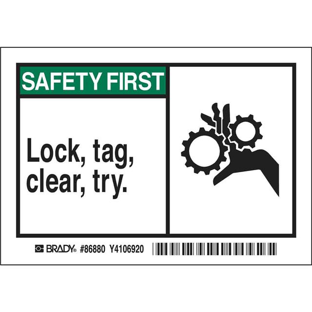This is manufactured by Brady Corporation. The manufacturer part number is 86880. Applications Information- notice. It is assigned with possible HTSUS value of 3919.90.5060. The product is rohs3 compliant. The symbol only legend includes - no symbol. Arrangement configuration includes - text only. Furthermore, the product is 3.500" (88.90mm) wide. Location Information - outdoor. The background colour is white. In addition, it is reach unaffected. The product is widely employed in general. The brady corporation's product offers user-desired applications. It is pre-printed. Language include - english. Its typical moisture sensitivity level is not applicable. Its accurate length is 5.000" (127.00mm). While text on legend is - lock, tag, clear, try.. It has a long 4 weeks standard lead time. The splendid features of the product include abrasion resistant, chemical resistant. The product is available in adhesive, permanent configuration. The product's body is manufactured from highly durable polyester (pet) materials. The product brady®, is a highly preferred choice for users. The legend is black, green. In addition, bulk is the available packaging type of the product. It is a rectangle product with unique specifications. The product is designated with the ear99 code number.