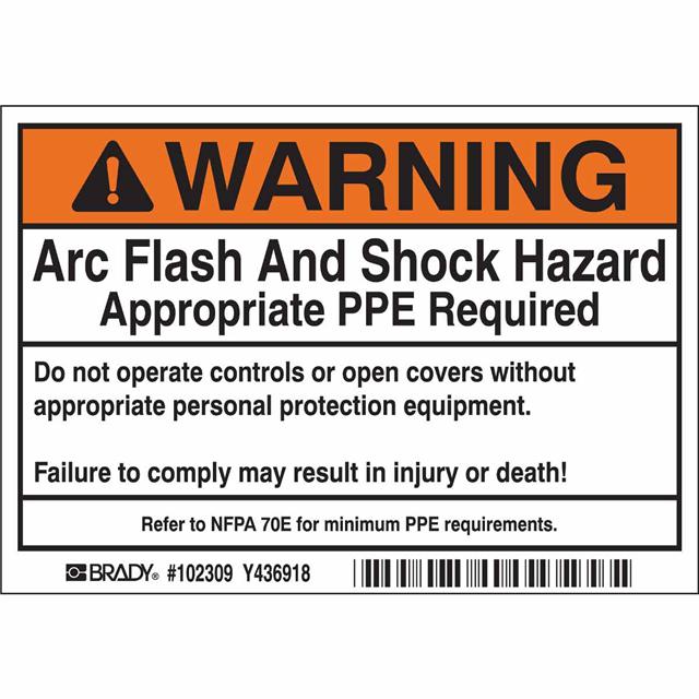 This is manufactured by Brady Corporation. The manufacturer part number is 102309. Applications Information- notice. It is assigned with possible HTSUS value of 3919.10.2055. The product is rohs3 compliant. The symbol only legend includes - warning. Arrangement configuration includes - text only. Furthermore, the product is 3.500" (88.90mm) wide. Location Information - outdoor. The background colour is white. It is a rectangle product with unique specifications. The product is widely employed in personal protection (ppe). In addition, it is reach unaffected. It is pre-printed. Language include - english. It is shipped in bulk package . Its typical moisture sensitivity level is not applicable. Its accurate length is 5.000" (127.00mm). While text on legend is - warning. arc flash and shock hazard appropriate ppe required do not operate controls or open covers without appropriate person…. It has a long 4 weeks standard lead time. The splendid features of the product include abrasion resistant, chemical resistant. The product is available in adhesive, permanent configuration. The product's body is manufactured from highly durable polyester (pet) materials. The product brady®, is a highly preferred choice for users. The legend is black. The product is designated with the ear99 code number.
