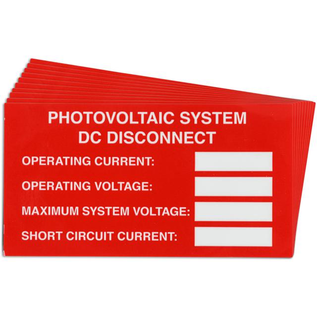 This is manufactured by Brady Corporation. The manufacturer part number is 149850. Applications Information- safety: warning. It is assigned with possible HTSUS value of 3919.90.5060. The product is rohs3 compliant. The symbol only legend includes - no symbol. Arrangement configuration includes - text only. Furthermore, the product is 2.000" (50.80mm) wide. Location Information - outdoor. The background colour is white. In addition, it is reach unaffected. The product is widely employed in general. The brady corporation's product offers user-desired applications. It is pre-printed. Language include - english. Its typical moisture sensitivity level is not applicable. Its accurate length is 3.750" (95.25mm). While text on legend is - photo voltaic system dc disconnect operating current. operating voltage. maximum system voltage. short circuit current.. It has a long 4 weeks standard lead time. The splendid features of the product include abrasion resistant. The product is available in adhesive configuration. The product's body is manufactured from highly durable vinyl materials. The product brady®, is a highly preferred choice for users. The legend is red. In addition, bulk is the available packaging type of the product. It is a rectangle product with unique specifications. The product is designated with the ear99 code number.