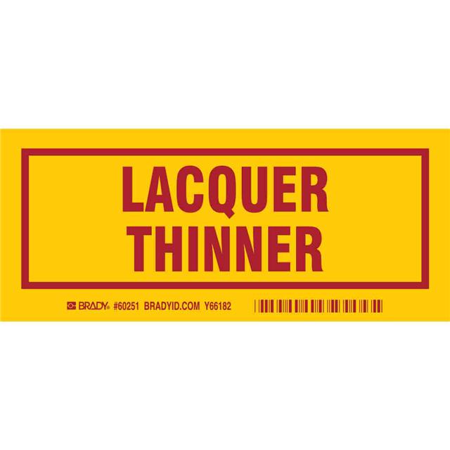 This is manufactured by Brady Corporation. The manufacturer part number is 60251. Applications Information- notice. It is assigned with possible HTSUS value of 3919.90.5060. The product is not applicable. The symbol only legend includes - no symbol. Arrangement configuration includes - text only. Furthermore, the product is 3.000" (76.20mm) wide. Location Information - outdoor. The background colour is yellow. It is a rectangle product with unique specifications. The product is widely employed in facility. In addition, it is reach unaffected. It is pre-printed. Language include - english. It is shipped in bulk package . Its typical moisture sensitivity level is not applicable. Its accurate length is 7.000" (177.80mm). While text on legend is - lacquer thinner. It has a long 4 weeks standard lead time. The splendid features of the product include abrasion resistant, chemical resistant. The product is available in adhesive configuration. The product's body is manufactured from highly durable polyester (pet) materials. The product brady®, is a highly preferred choice for users. The legend is red. The product is designated with the ear99 code number.