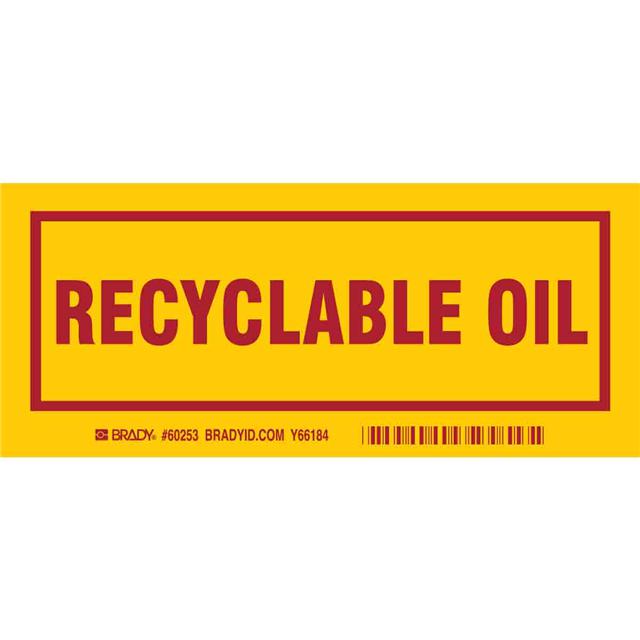 This is manufactured by Brady Corporation. The manufacturer part number is 60253. Applications Information- notice. It is assigned with possible HTSUS value of 3919.90.5060. The product is not applicable. The symbol only legend includes - no symbol. Arrangement configuration includes - text only. Furthermore, the product is 3.000" (76.20mm) wide. Location Information - outdoor. The background colour is yellow. It is a rectangle product with unique specifications. The product is widely employed in facility. In addition, it is reach unaffected. It is pre-printed. Language include - english. It is shipped in bulk package . Its typical moisture sensitivity level is not applicable. Its accurate length is 7.000" (177.80mm). While text on legend is - recyclable oil. It has a long 4 weeks standard lead time. The splendid features of the product include abrasion resistant, chemical resistant. The product is available in adhesive configuration. The product's body is manufactured from highly durable polyester (pet) materials. The product brady®, is a highly preferred choice for users. The legend is red. The product is designated with the ear99 code number.