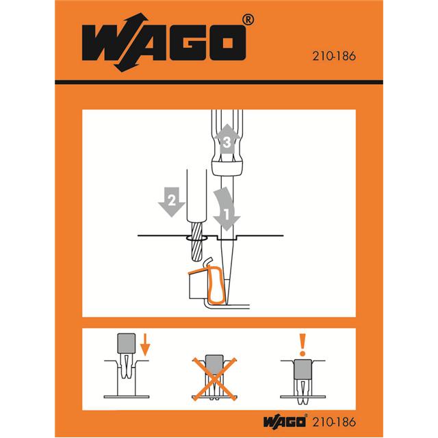 This is manufactured by WAGO Corporation. The manufacturer part number is 210-186. Applications Information- safety. It is assigned with possible HTSUS value of 3919.90.5060. The product is rohs3 compliant. The symbol only legend includes - safety function. Arrangement configuration includes - symbol only. The background colour is orange, white. The product is widely employed in industrial applications. In addition, it is reach unaffected. It is pre-printed. It is shipped in box package . Its typical moisture sensitivity level is not applicable. It has a long 12 weeks standard lead time. The legend is black. The product is designated with the ear99 code number.
