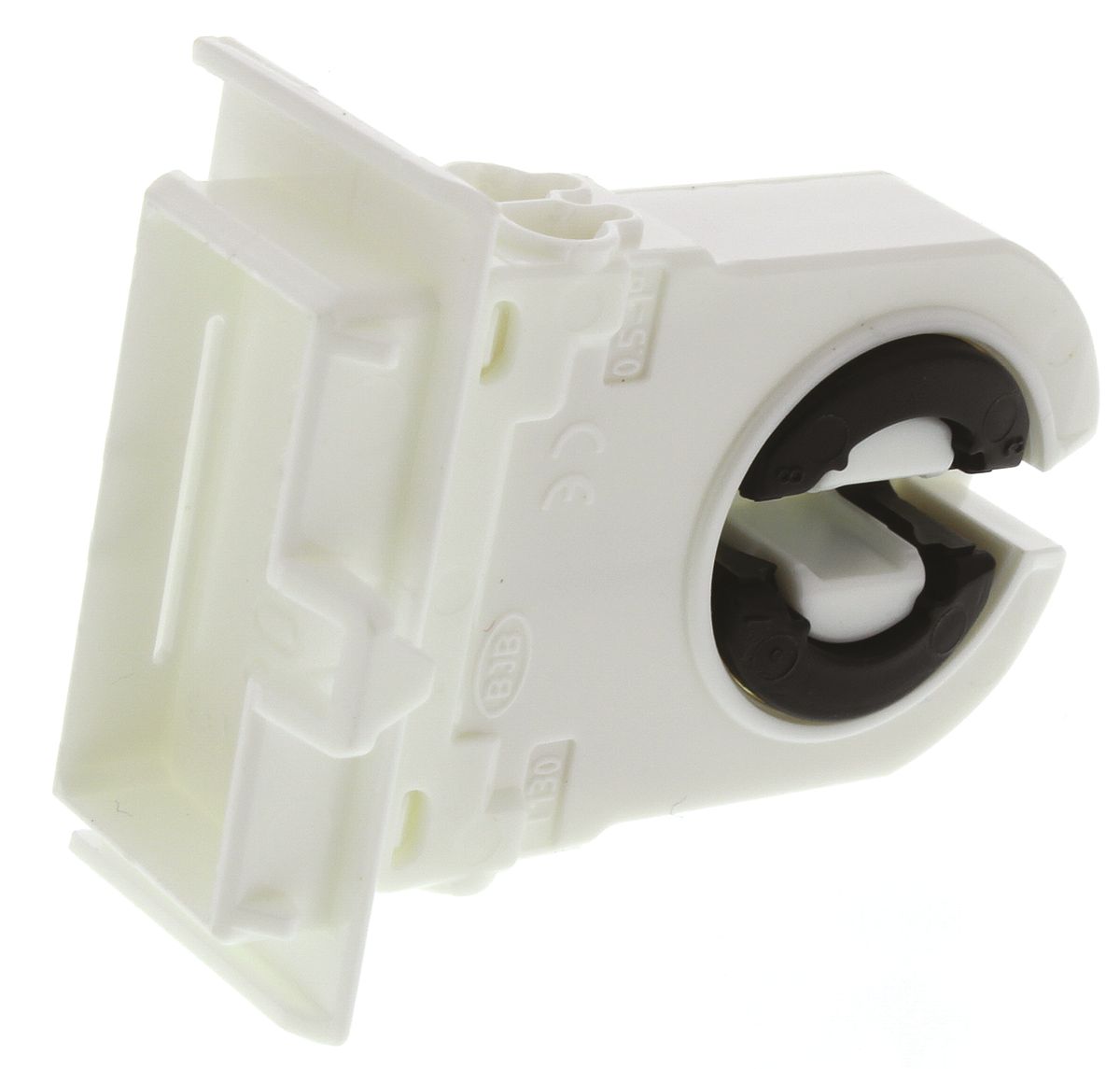 This is 660 W 2 pin PC G13 Base Fluorescent Lampholder T8/T12 Snap-Fit Fixing Push-Wire manufactured by BJB. The manufacturer part number is 26.308.1125.50. It has a/an either side wiring points . Its lamp is t8/t12 in size . It is fixed using snap-fit method . This product carries 660 w. The product is made from highly stable and reliable pc. Furthermore, the product is 19.3 mm wide. Its accurate length is 33 mm. It has g13 base . It is comprised of 2 pins. With push-wire wiring type . It has a/an fluorescent type supported lamp .